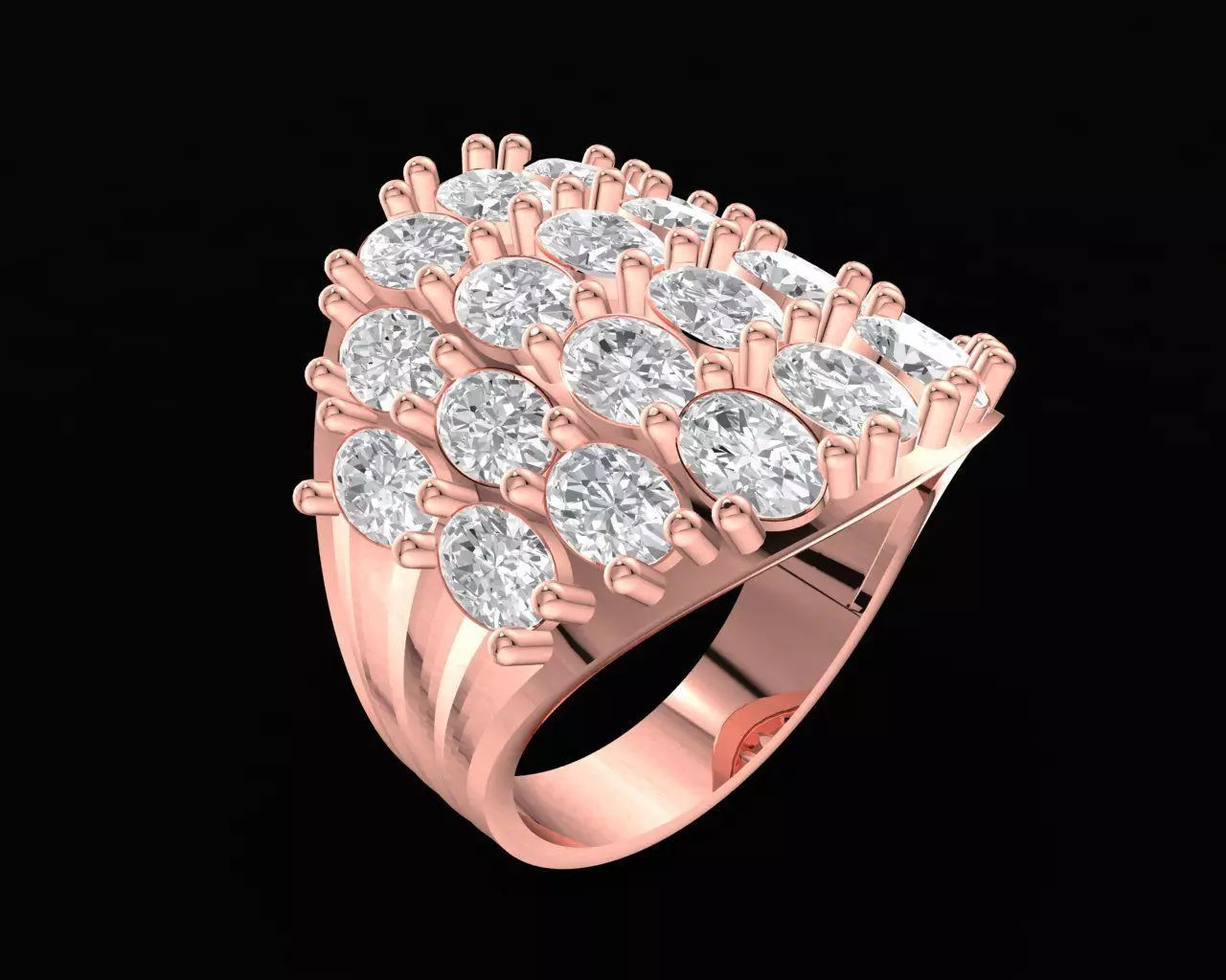 This luxury oval cluster statement ring design features a bold arrangement of multiple oval-shaped stones set closely together to form a striking and elegant surface. The layered cluster layout creates strong visual depth and brilliance, making the ring a powerful centerpiece for fine jewelry collections.
