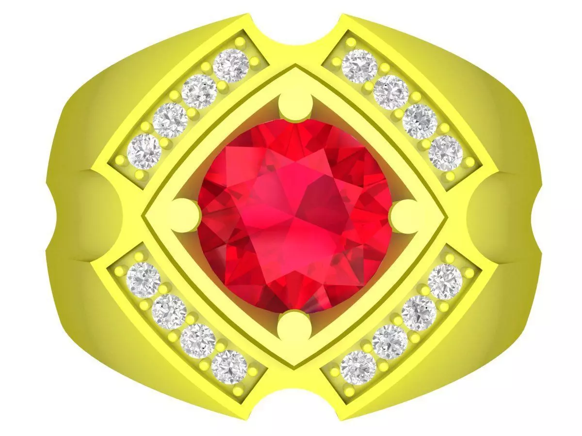 This square frame gemstone men ring 3D model features a bold masculine design with a round center stone set inside a squared frame with softened corners. The surrounding surface is accented with small stones arranged in a clean geometric pattern, creating a strong and balanced architectural look.