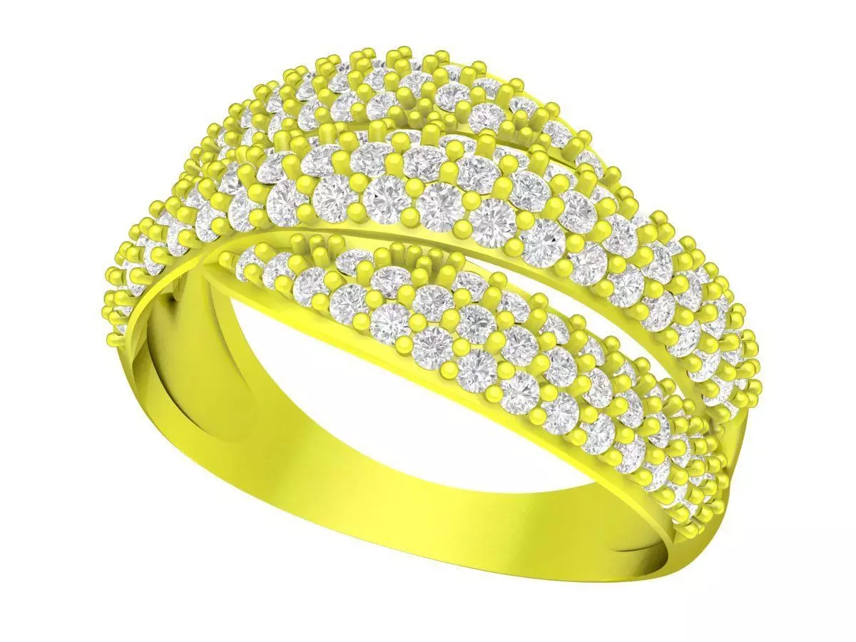 This luxury multi row pavé band ring 3D model showcases an elegant layered design with multiple rows of round gemstones carefully set across the top of the band. The structured arrangement creates strong brilliance and visual depth while maintaining a smooth and comfortable inner surface.