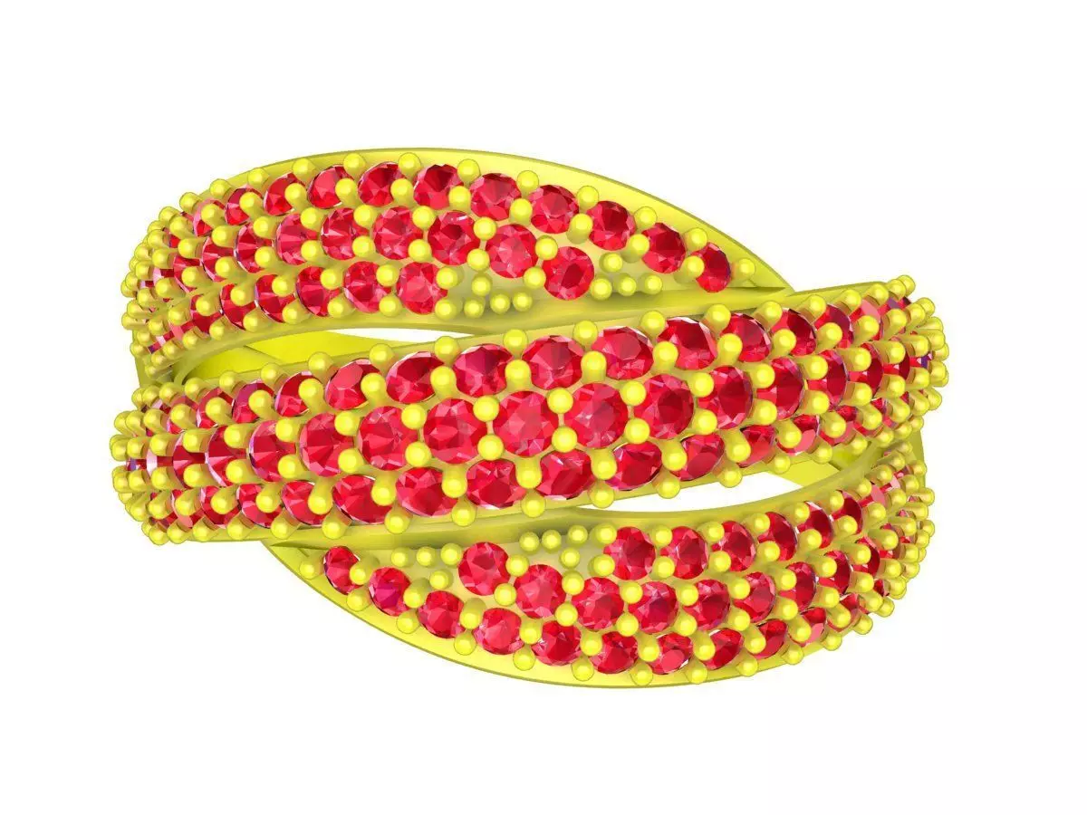 This luxury wide pavé twist ring 3D model features a bold overlapping design with multiple rows of pavé-set stones flowing across the surface. The curved layered structure creates a strong visual impact while maintaining a smooth and wearable form.