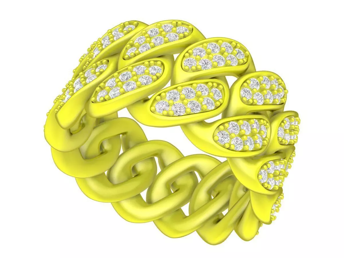 This luxury braided chain pave diamond ring 3D model features an eye-catching interwoven band design combined with oval-shaped links set with pave stones. The bold chain-inspired structure creates a strong statement look while maintaining elegance and balance, making it ideal for modern fashion jewelry and luxury collections.