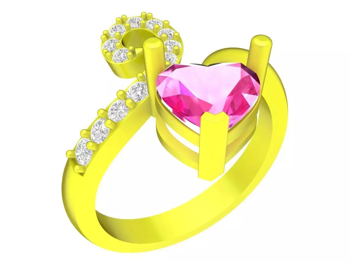 This 3D jewelry model features a romantic bypass ring design highlighted by a heart shaped center stone. One side of the band gracefully curves upward, accented with pavé diamonds, creating a flowing and modern silhouette that symbolizes connection and affection.