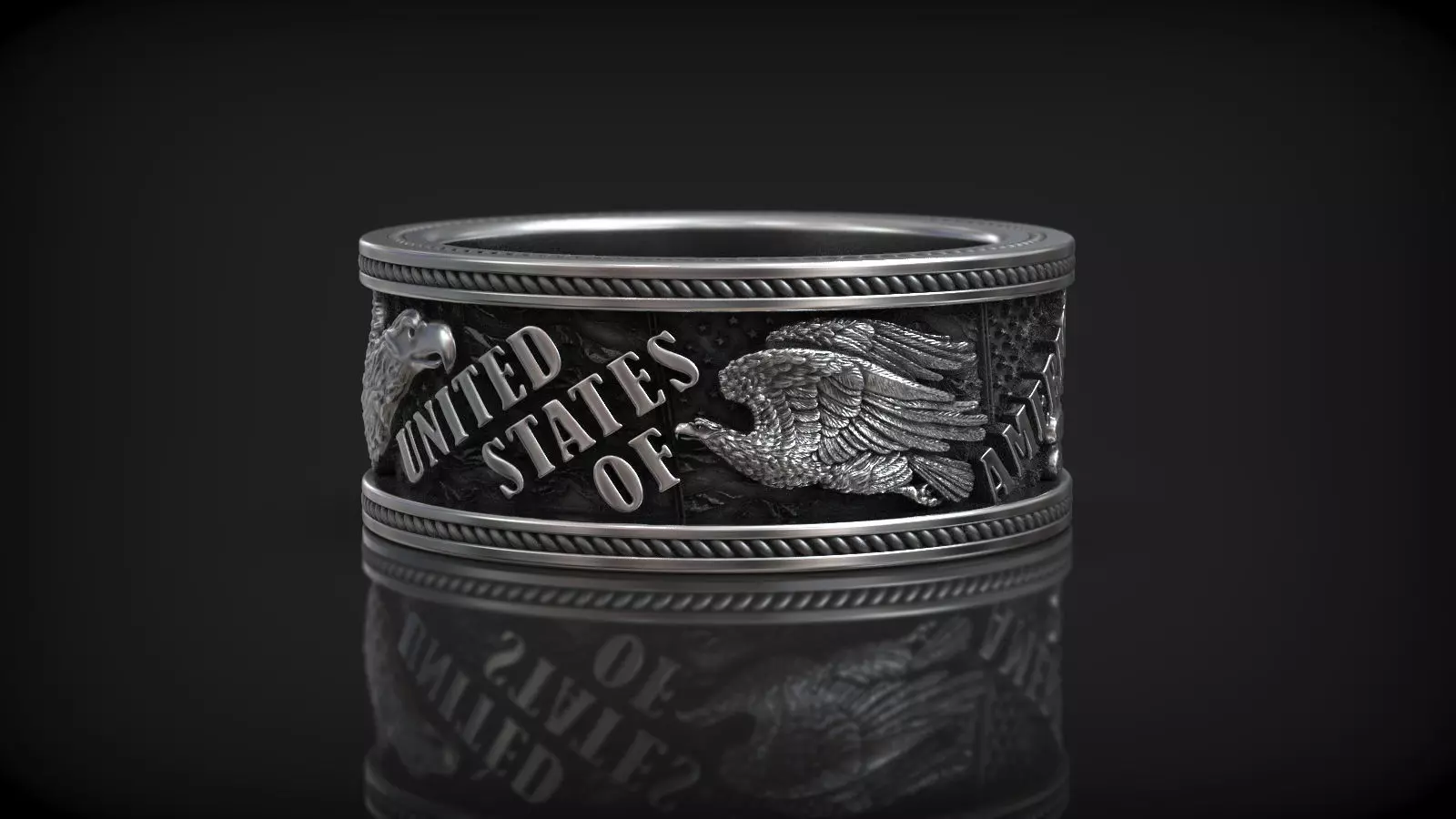 A patriotic ring featuring the American flag and eagles - a powerful symbol of the United States of America. This ring has been designed to honor the rich history and traditions of America, and is perfect for those who want to show their pride and support for their country.3D Model the ring is expertly crafted to capture the beauty and majesty of the American flag and eagles, with intricate detailing and a bold, eye-catching design.As the designer and creator of this 3D model, I take great pride in the work that has gone into its creation. From the initial concept to the final product, I have worked diligently to ensure that this ring is a fitting tribute to the United States of America.