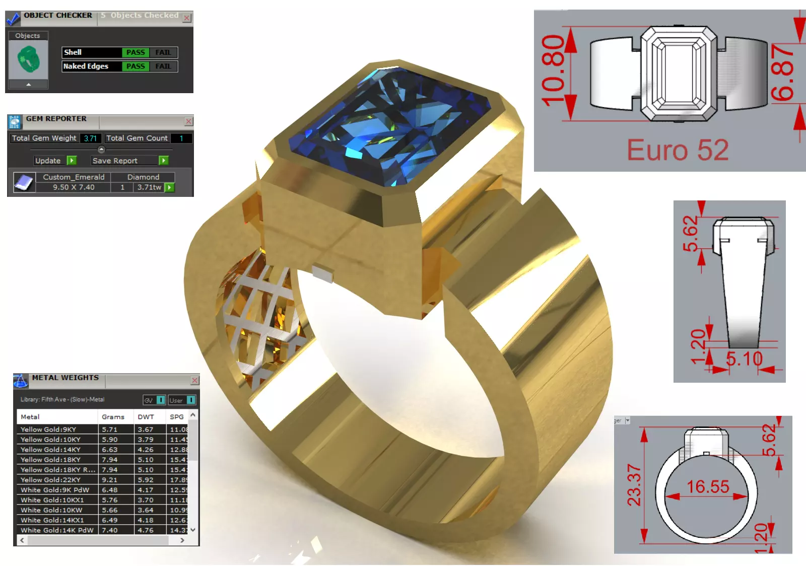 • Emerald/Rectangular Cut Center Stone: