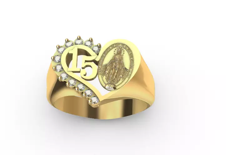 Anillo De Quiceanera con medalla virgen de la milagrosa 3D print model