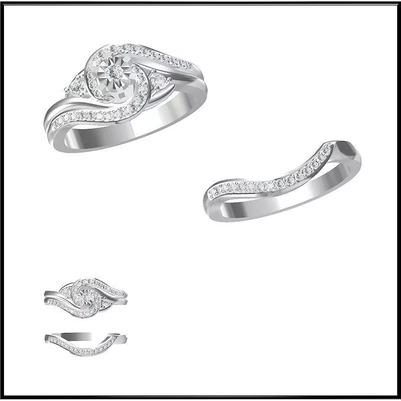JCD Format Art deco bridal set ring jewelry cad 3D print model