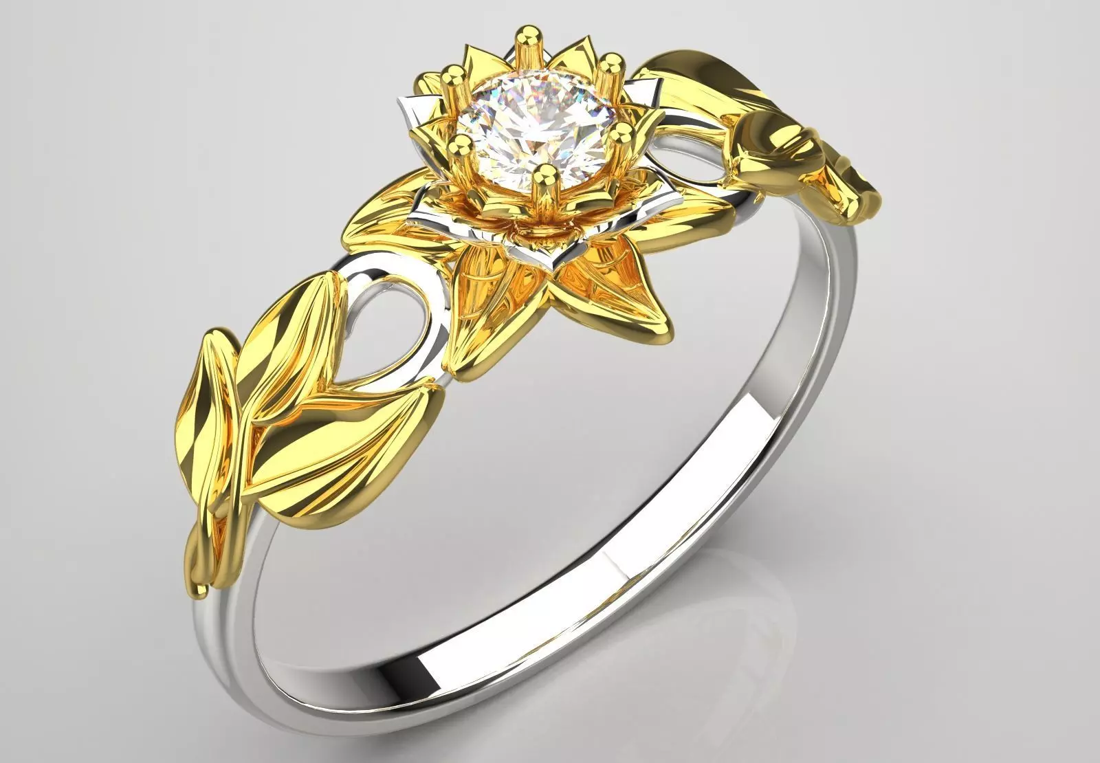 Artistic TwoTone Gold Engagement Ring Flower Design Model sr0094 3D print model