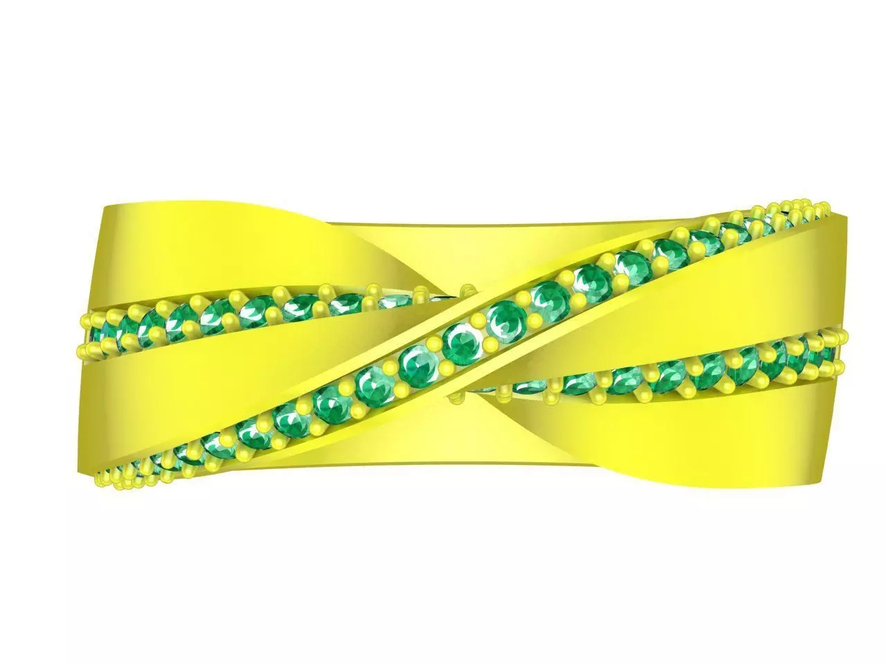 This 3D jewelry model features a luxury criss cross pave gemstone ring designed for women, showcasing a modern and elegant intertwined band structure. The ring is formed by overlapping metal bands, each accented with a continuous row of round gemstones set in a precise pave arrangement.