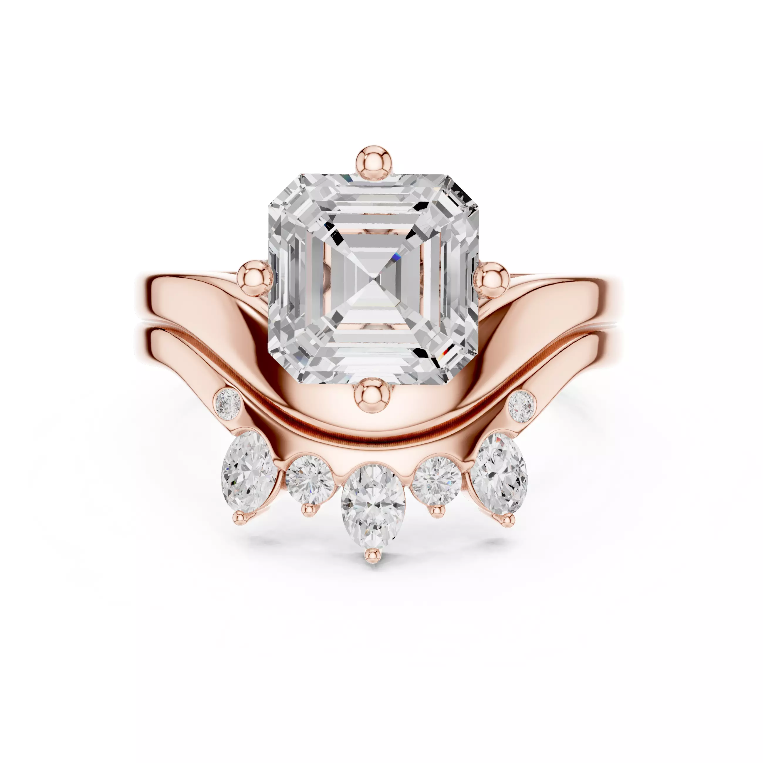 Asscher Cut Solitaire Curved Wedding Ring Set 3DM STL Video 3D print model