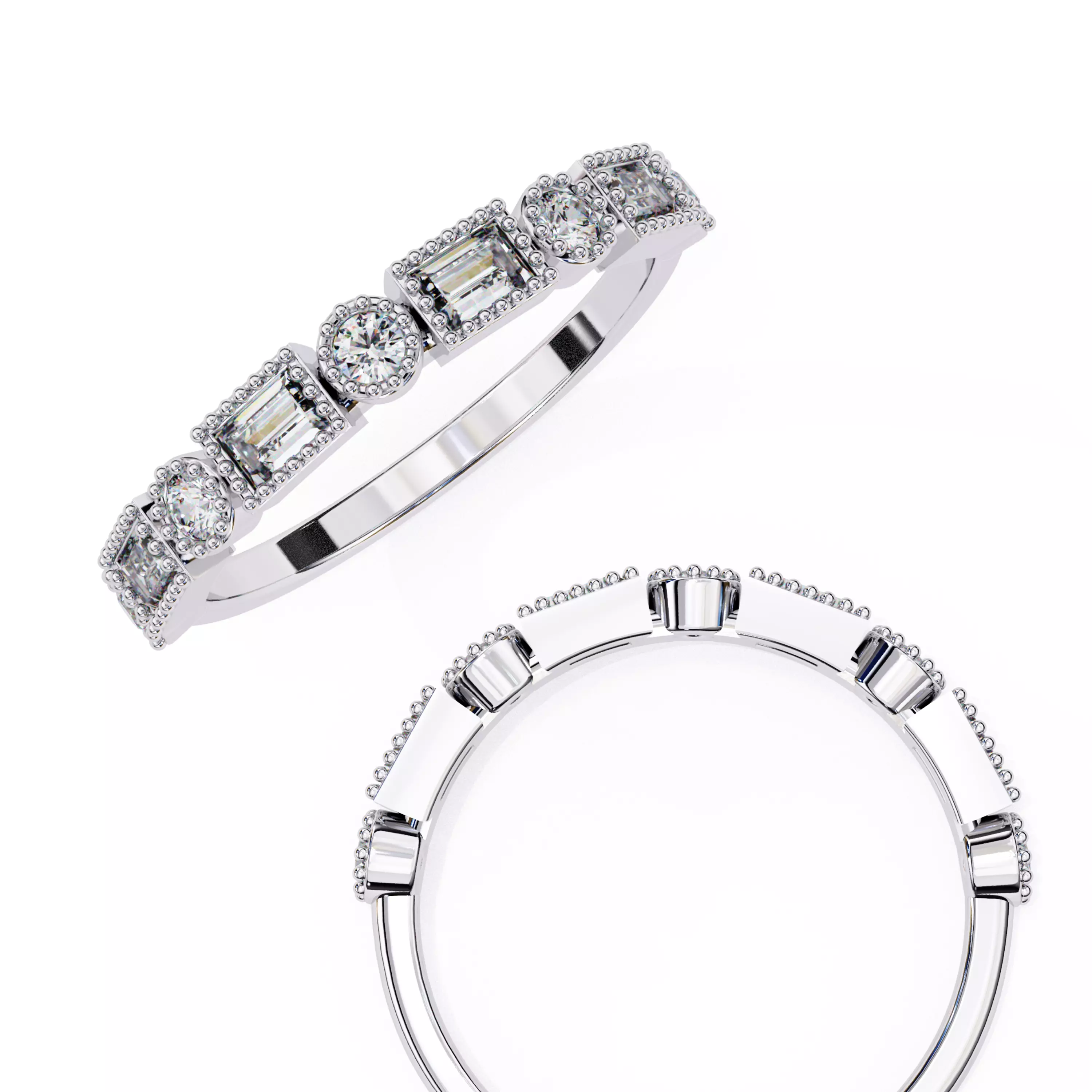 Baguette Round Cut Moissanite Engagement Eternity Band For Her 3D print model