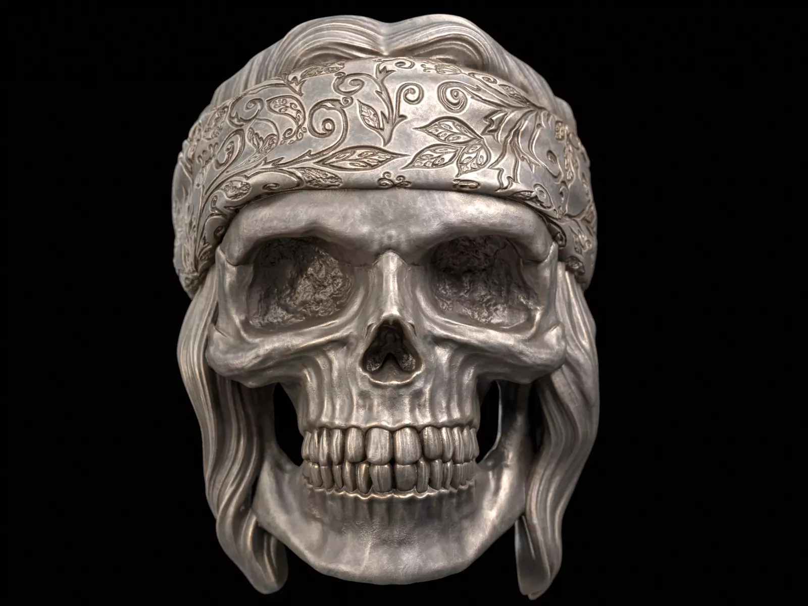 The back-face of the skull is hollowed out to reduce the weight if you wanted to cast it in metal. I've cast the same model in brass, and aluminum.