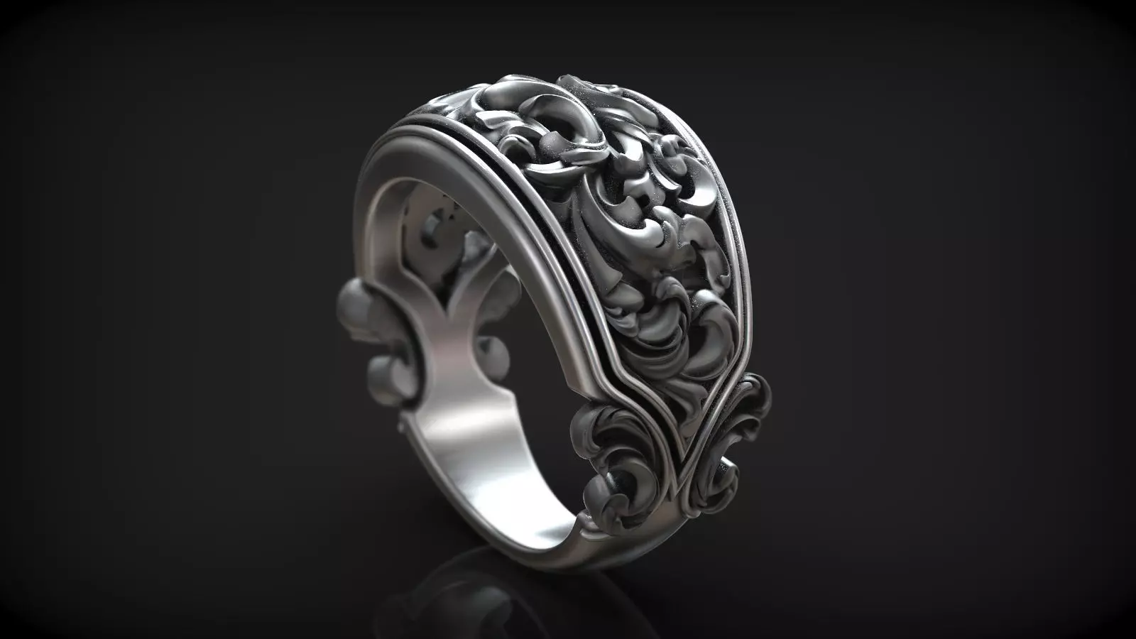 This stunning ring is a true masterpiece, with a vintage baroque style that's both ornate and sophisticated. The design is characterized by intricate patterns that are etched into the metal, creating a sense of depth and texture that's truly breathtaking.The design is etched into the metal using precise 3D modeling techniques, ensuring that every detail is crisp and clear.The patterns themselves are inspired by the elaborate designs of the baroque era, with a mix of flowing lines, curves, and intricate flourishes that create a sense of opulence and luxury. The details are so fine that they almost appear to be three-dimensional, giving the ring a sense of depth and complexity that's truly impressive.The overall effect of the ring is one of timeless elegance and sophistication. It's the perfect accessory for anyone who appreciates the beauty of vintage style and wants to add a touch of glamour to their wardrobe.