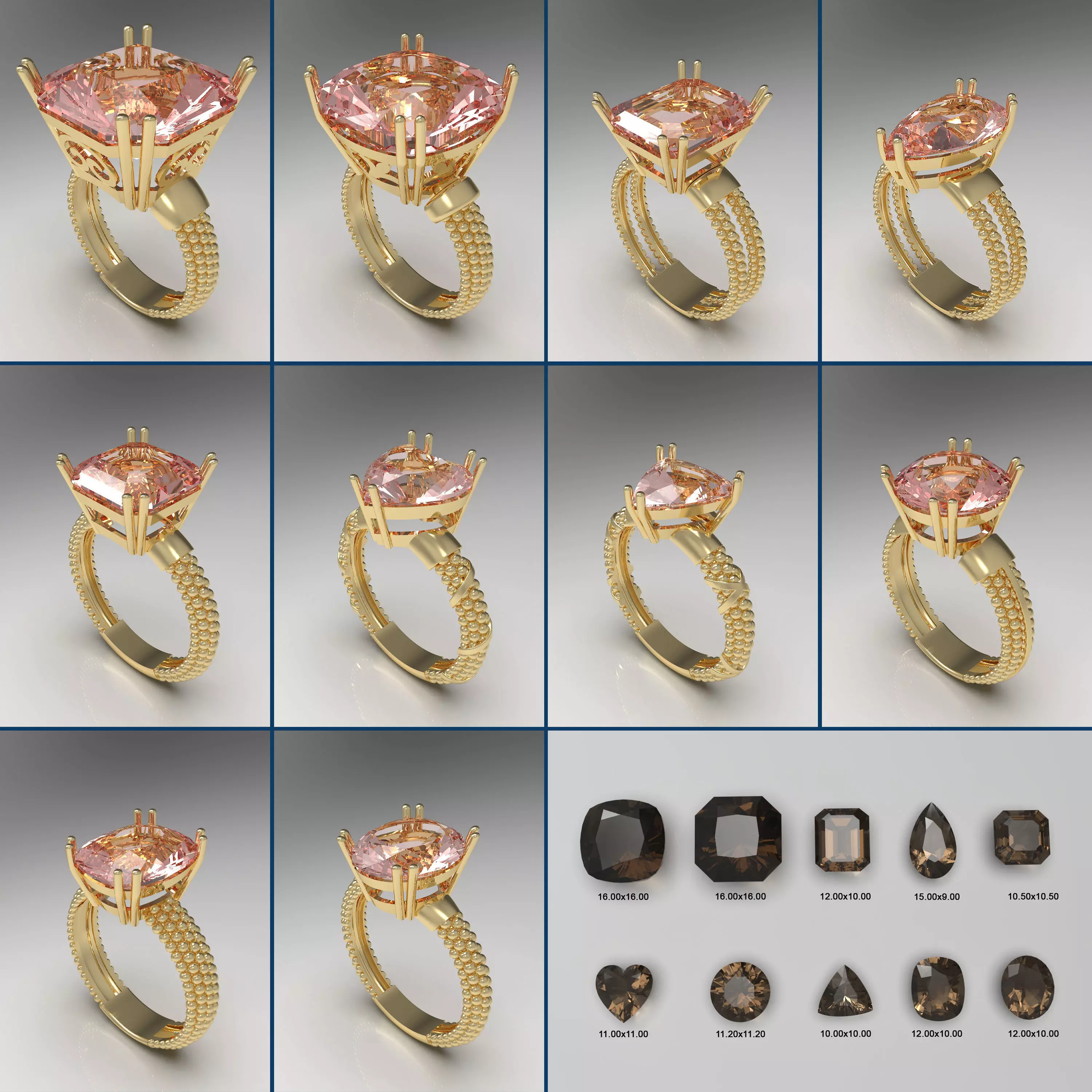 This collection includes 10 designed gold ring files, each featuring a beaded pattern on the shank.The models are designed for resin casting and calibrated with the largest gemstone size in Matrix.Each ring has a stone seat with various shapes such as oval cushion triangle diamond round heart emerald radiant ring bead , and the average weight ranges between 3 to 5 grams.The designs are lightweight and optimized for efficient casting and material use.Ring size Europe 57Ring size USA 8