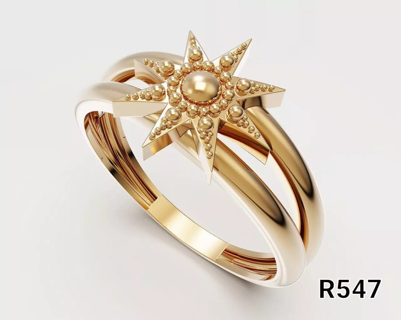 This open-style ring features a bold star-shaped centerpiece with a layered beaded structure, paired with a smooth double-band form for visual balance and strength. This model has passed all production tests and is fully ready for manufacturing without any additional adjustments. All production-ready files can be downloaded directly from our page. For more luxury ring designs, manufacturers are welcome to visit and explore our page.Approximate Weight 4 – 5 grams(based on standard ring size and metal density)