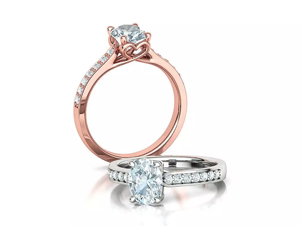 Bespoke Hearts Solitaire Ring with 1ct Oval Stone 8mm x 6mm 3D print model