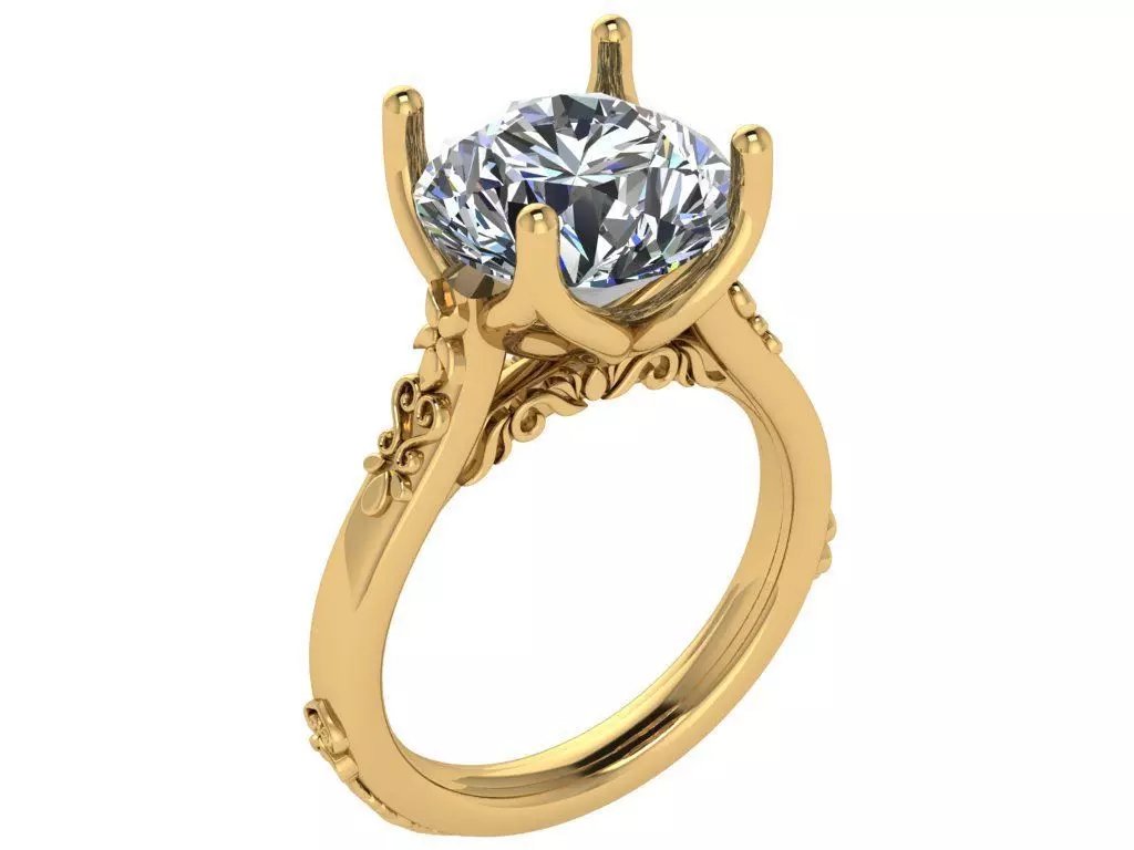 This elegant ring features a stunning center stone securely set in a sleek, modern bezel that offers both protection and a continuous glow. Wrapping delicately around the base, intricate floral accents add a touch of timeless romance and nature-inspired beauty to the design. Expertly crafted in solid gold, this piece blends contemporary elegance with soft, artistic details, making it perfect for those who appreciate both durability and delicate craftsmanship. Ideal for marking special moments or expressing personal style, this ring is a subtle yet captivating statement of refined taste.