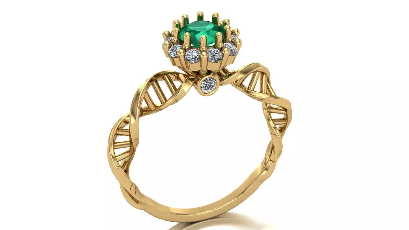 This ring pays tribute to Biomedical ScienceRing inspired by the DNA double-helix structure, symbolizing the union between science and life. It features a central 5 mm gemstone surrounded by 12 smaller stones of 1.75 mm, creating an elegant crown-like design. A round accent stone below the head completes the anatomical aesthetic.Estimated weight: 2.5 g (Au750).All measurements of the piece are shown in the image in millimeters.Includes a file containing the model in multiple ring sizes, in addition to the one shown in the images.Poesie