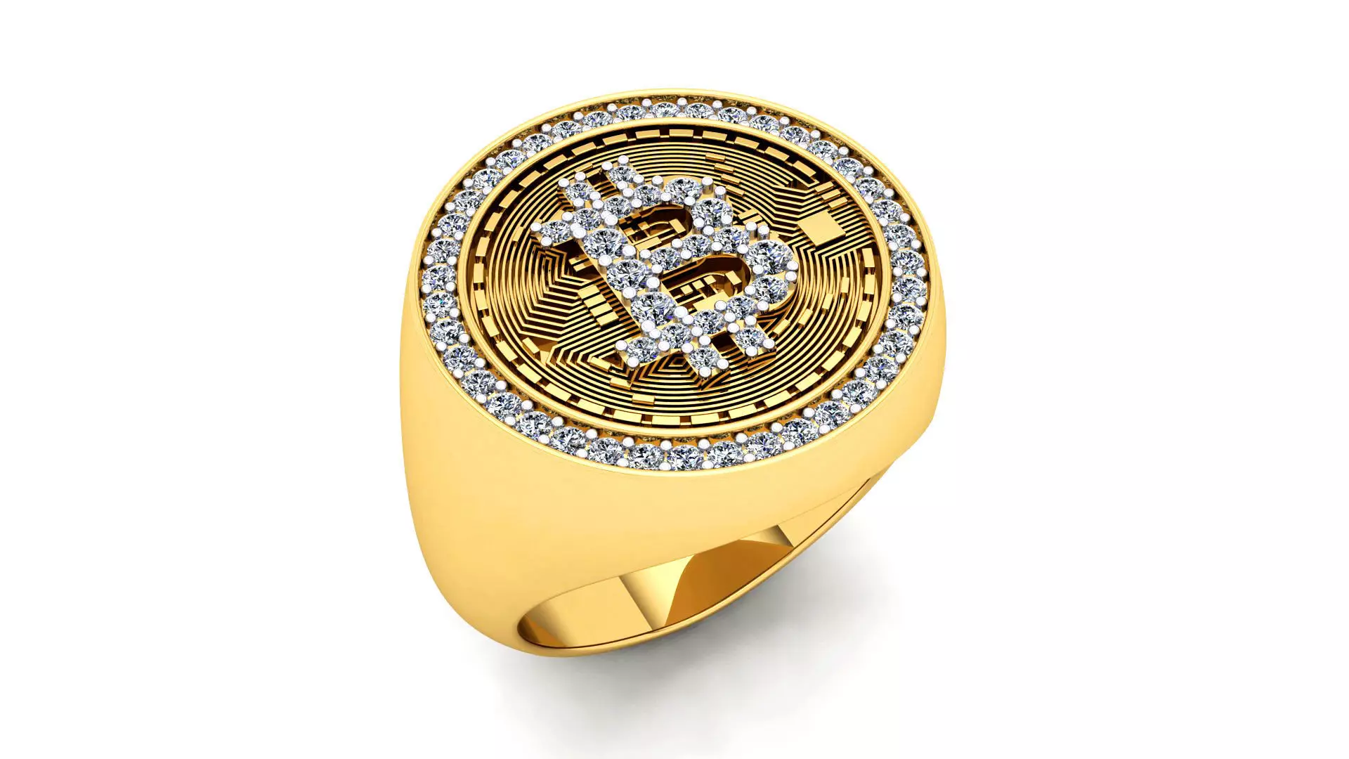 This is ideal for Men Fancy Gold Ring. Bitcoin Ring.
