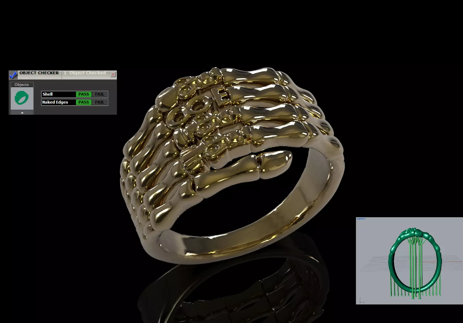 - The upper part of the ring (Head/Shank) displays the wrist, palm, and finger joints in detailed detail, which cover the surface of the ring in a compact and dense manner.