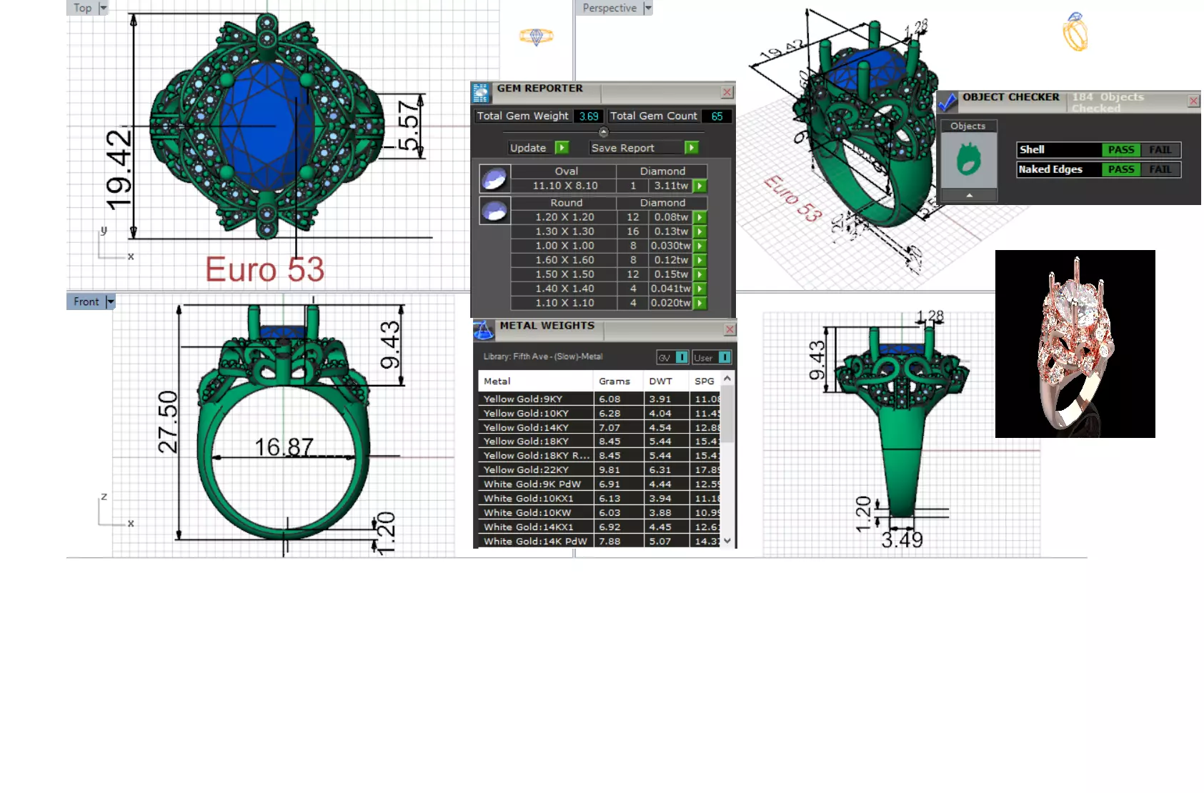 Diamond Size and Carat Weight: 61 Brilliant Cut Diamonds. 1 Oval Cut Diamond. Total Diamond Weight 3.69 Carats. Check the Diamond Chart attached in the image.