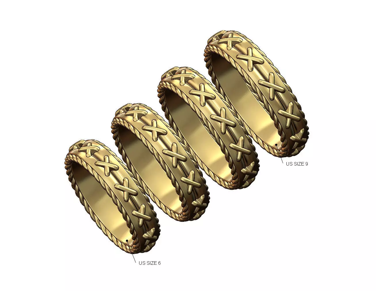 Braided rope sides cross stitch band US sizes 6to9 3D print model