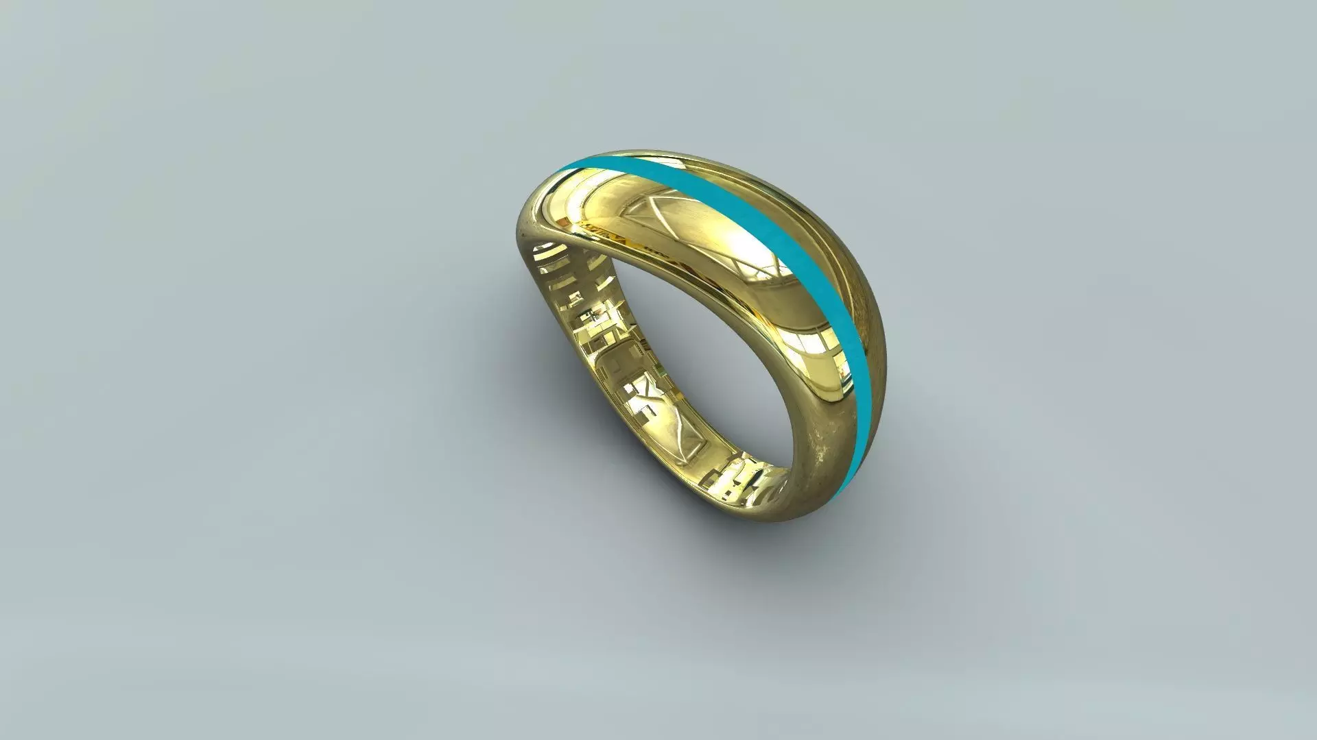 Combining organic movement with a sharp burst of color, this wide statement ring features a fluid, undulating profile that creates a rhythmic wave around the finger. The center of the broad, rounded band is punctuated by a striking, perfectly straight inlay of bright turquoise, providing a vivid architectural contrast to the polished gold curves. This professional-grade CAD model is precision-engineered for high-fidelity 3D printing and casting, featuring a recessed central channel designed to hold stone inlay, enamel, or resin securely. The interior is finished with a smooth, high-polish comfort-fit shank, ensuring that this bold piece remains comfortable for daily wear.