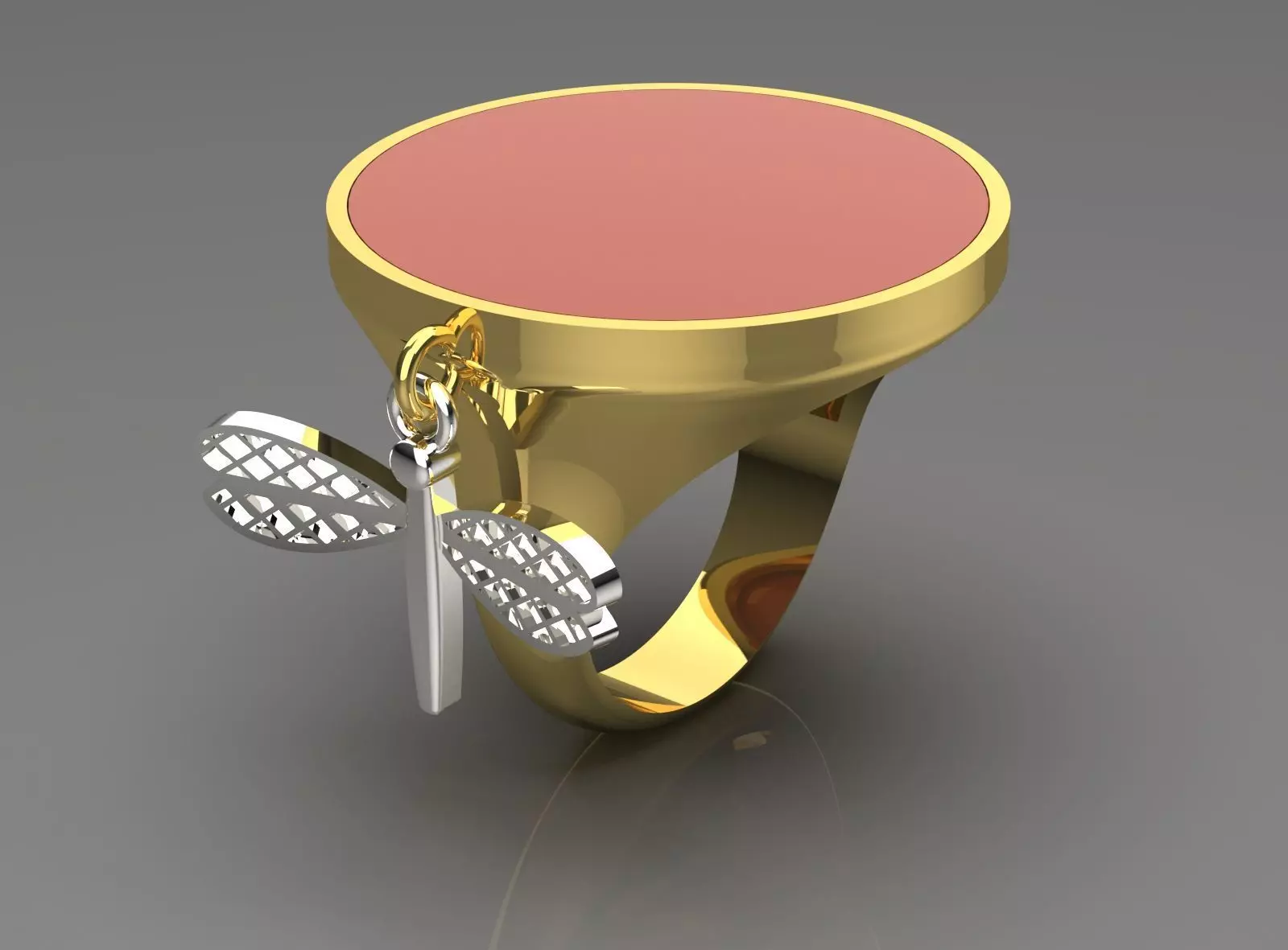 Title: Soaring in Beauty: Carnelian and Dragonfly Pendant Gold Ring