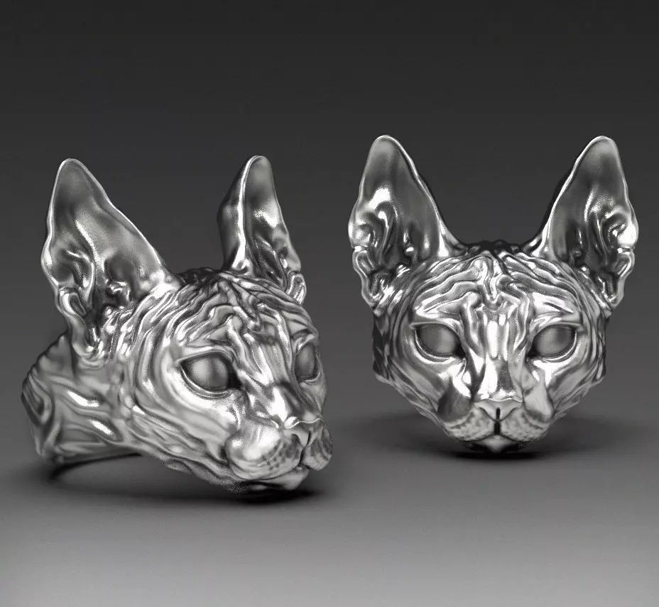 The Sphynx cat is made in the form of a ring. The model is solid, available in .stl, .obj formats. 3 ring files are available for download (inner ring diameter, mm): 16, 18, 20.