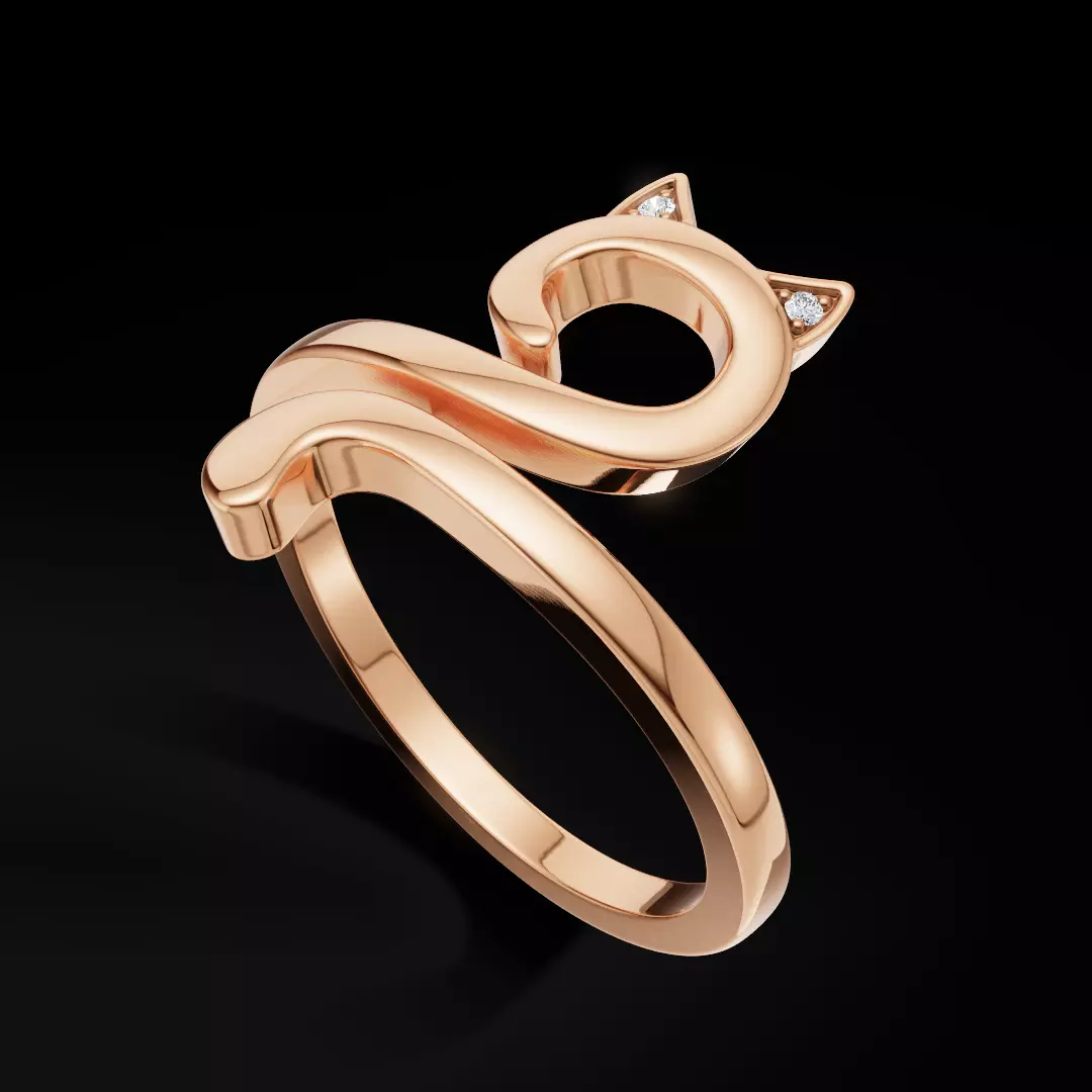 This charming cat-inspired ring wraps gracefully around the finger, capturing the essence of feline elegance in a sleek and modern design. The tail-like band spirals into a curled shape, while the subtle cat ears are accented with small round stones, adding just the right amount of sparkle. Ideal for cat lovers, minimalist jewelry collections, or unique fashion pieces, this 3D model is perfect for use in high-end renders, 3D printing, or jewelry production.