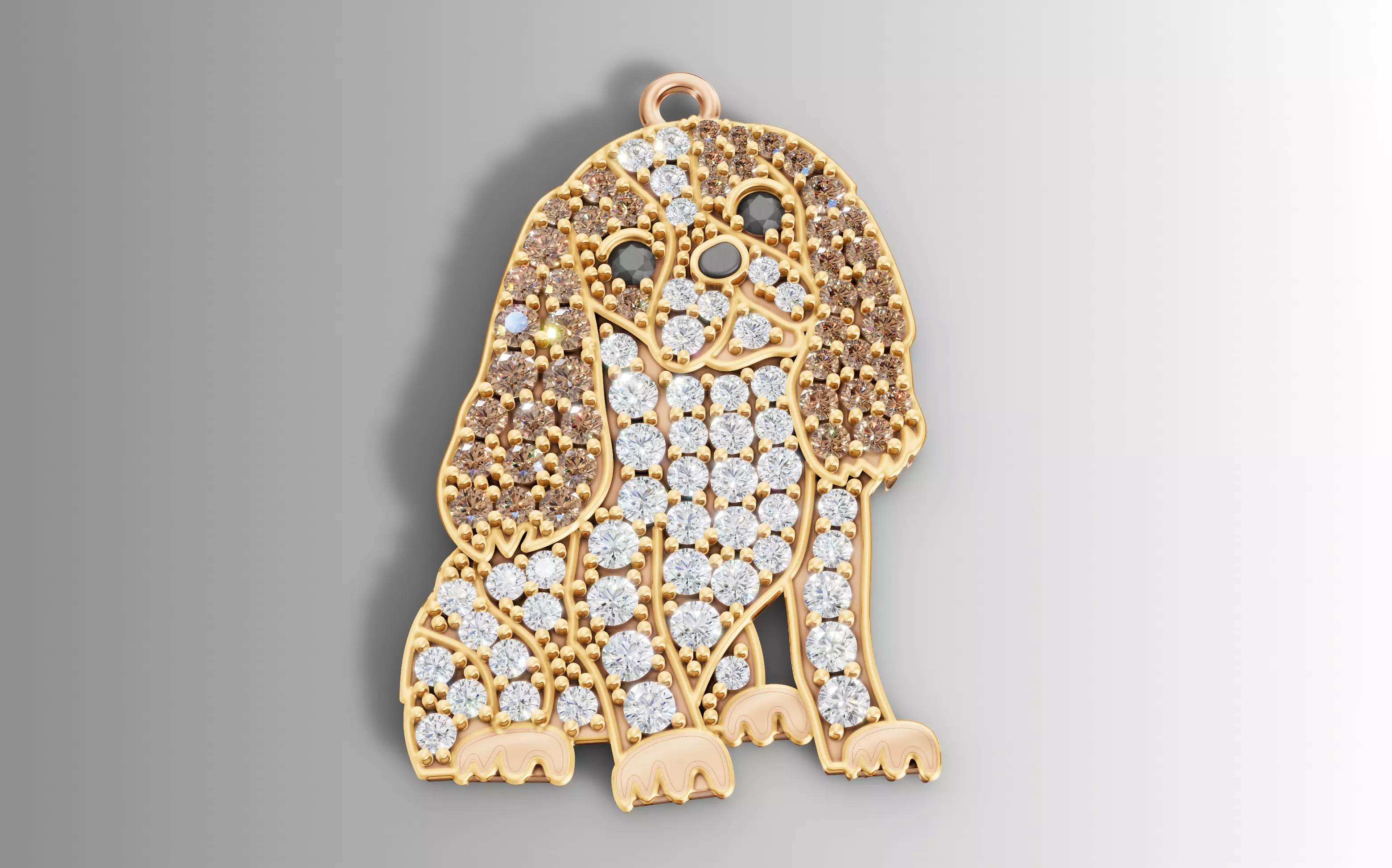 Specification,DetailJewelry Type,Pendant/Dog Charm (CAD Model)Overall Dimensions,25.32 mm (Height)Total Gem Weight (CTW),1.11 ct (Simulated Diamond Weight)Total Gem Count,90Stone Sizes/Cut,Multiple small Round stonesExample Metal Weight,Yellow Gold 14KY: 3.04 gramsFile Types Included,STL, 3DM (For 3D Printing / Manufacturing)
