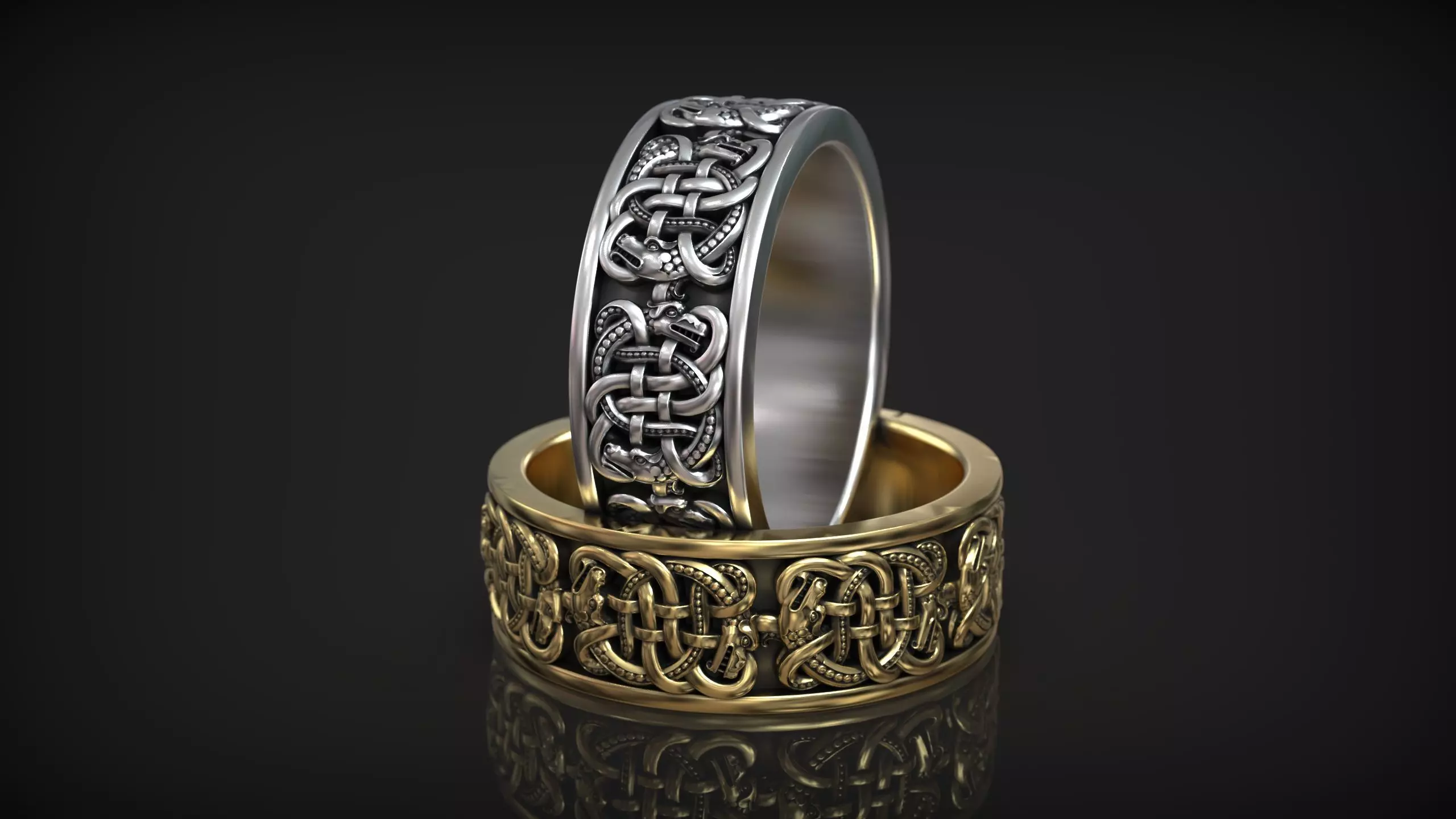 The rings are designed with high detail, making them ideal for jewelry production in silver, gold, or other metals. Thanks to their precise geometry, they are perfect for 3D printing, CNC milling, and lost wax casting. These rings are suitable for those who appreciate historical, Viking, and fantasy-inspired jewelry.
