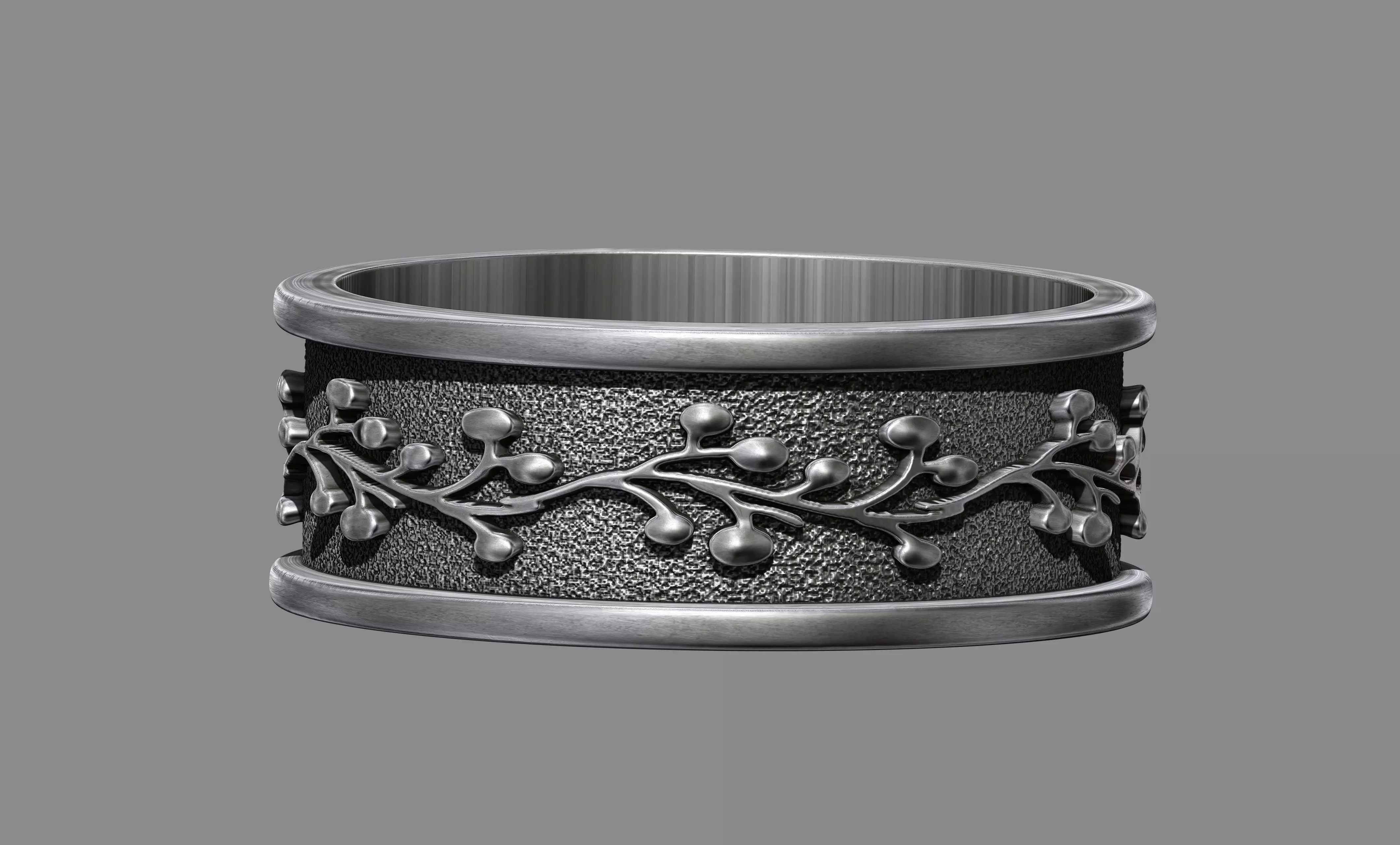 A delicate, nature-inspired band featuring an engraved cherry blossom floral design flowing around the ring. Symbolising beauty, renewal, and the fleeting nature of life, the soft floral detailing creates an elegant and meaningful piece. Designed for high-quality 3D printing and suitable for metal casting, this ring is ideal for wedding bands, promise rings, or refined floral jewellery projects.