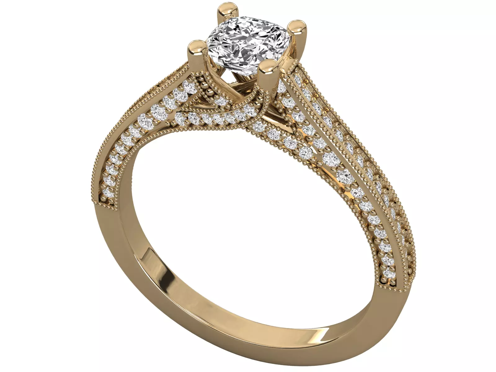 Classic Dia Engagement Promise Ring with Detailed Milgrain Band 3D print model