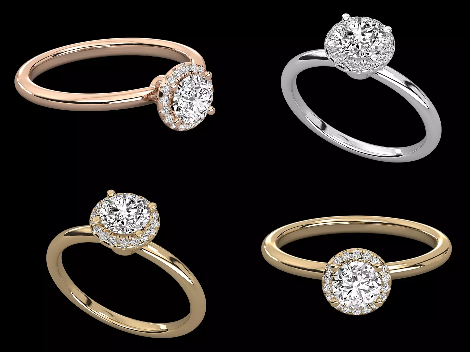 Design Type: Halo diamond engagement ringCenter Setting: Round stone with halo settingBand Style: Plain smooth bandDesign Style: Classic, elegant, timelessModel Quality: Production-ready CADApplication: Professional jewellery manufacturing