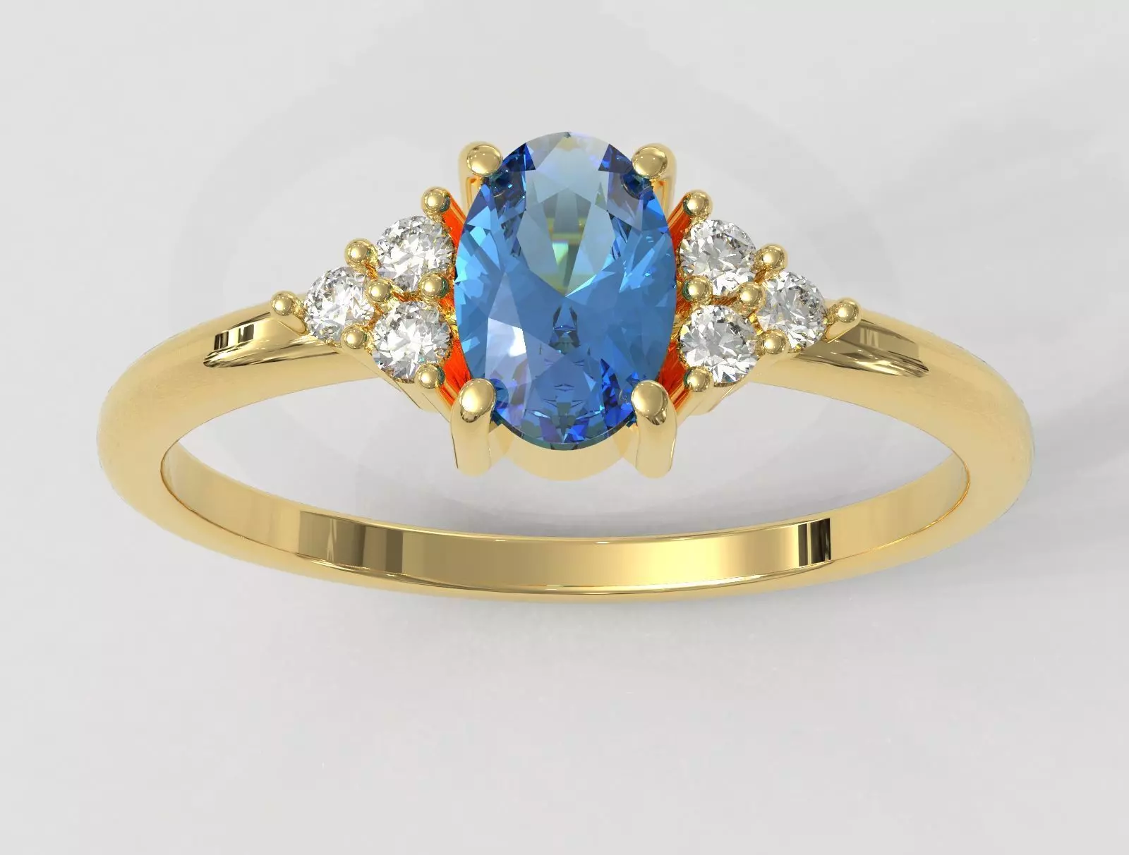 Diamond sizes and quantity:1 Oval Gemstone (6mmx4mm) and 6 diamonds (1.50mm).