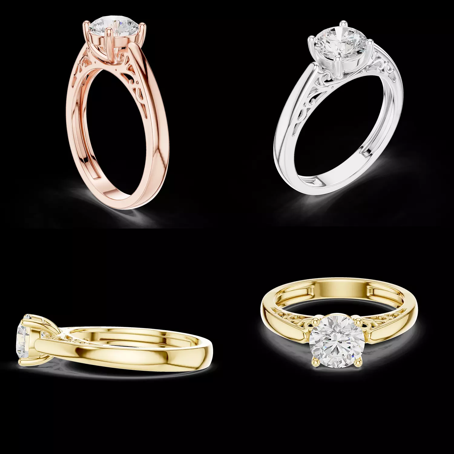 This model is ideal for engagement rings, bridal collections, and brands seeking elegant solitaire designs with subtle artistic details.
