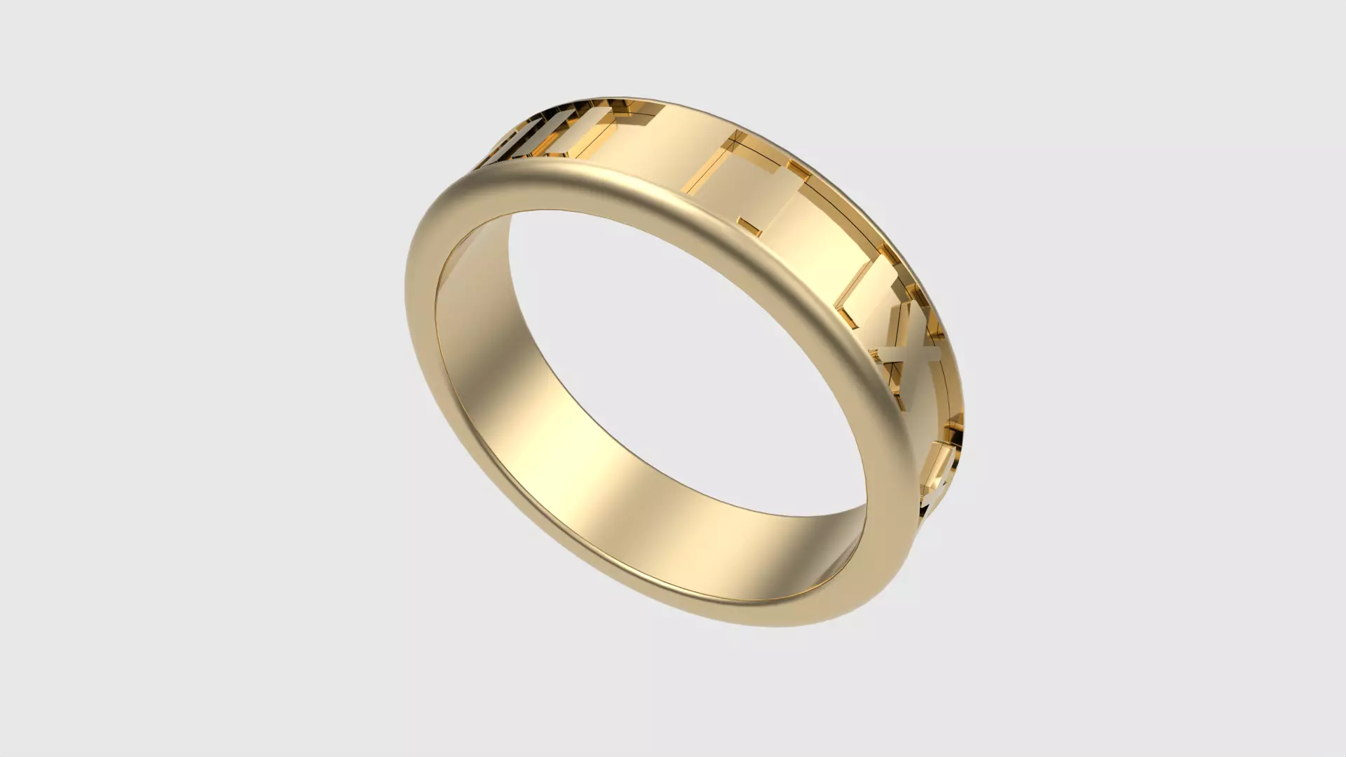Sleek Contemporary Geometric Band Ring With Intricate Design