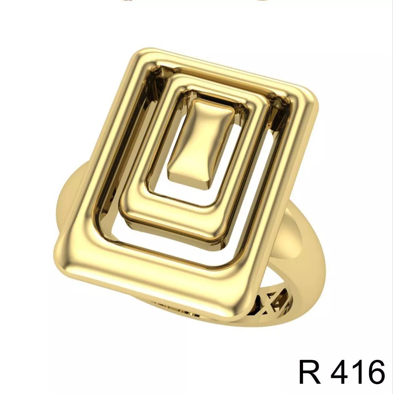 This gold ring features a structured geometric design composed of layered square frames with a refined central core, creating depth, symmetry, and a strong architectural presence.The model is precisely engineered with clean topology, consistent wall thickness, and smooth surface transitions to meet professional jewelry manufacturing standards.All production and manufacturing tests have been successfully completed, ensuring the model is technically sound and free of any defects.The ring is fully prepared for casting and high-quality jewelry production.