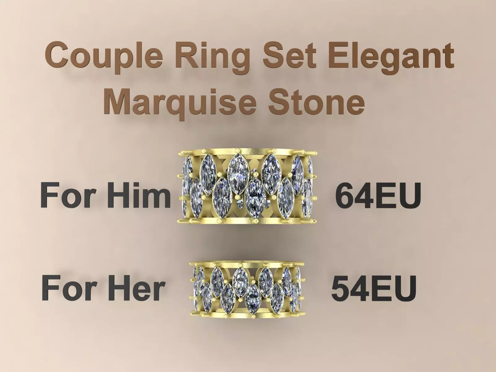 This is a couple ring set or Couple Wedding Band designed specifically for upload and production.The men’s ring is EU size 64 and the women’s ring is EU size 54.