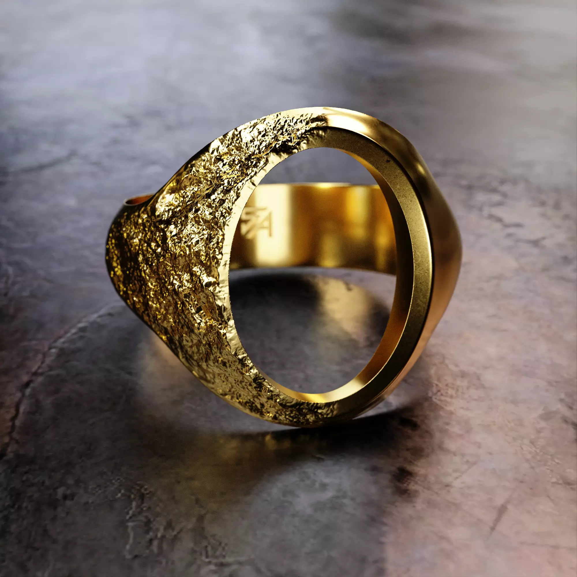 This unique 3D ring design features a bold, organic texture combined with a refined polished band, creating a powerful contrast between rough natural surfaces and elegant smooth curves. Perfect for 3D printing in jewelry production, it’s optimized for both resin and metal casting workflows.