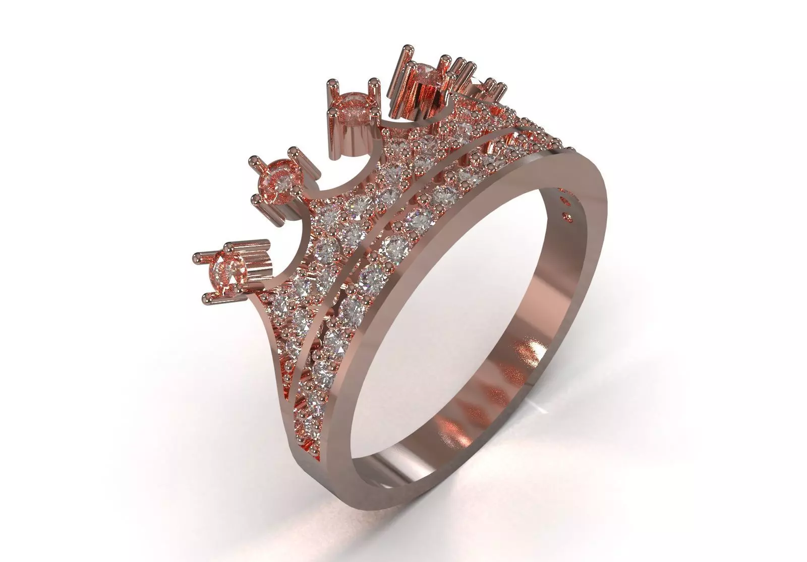 In short: You are viewing a preview image of a digital CAD model of a luxurious crown-shaped, jewel-encrusted, rose gold ring that is being sold for physical fabrication and production.