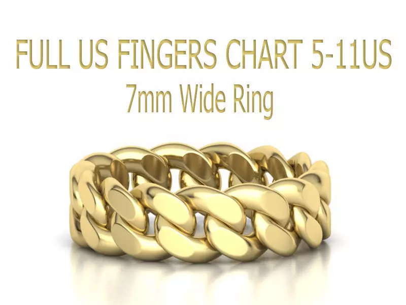 Cuban Link Chain Ring 7mm FULL US FINGERS CHART 5-11 3D print model