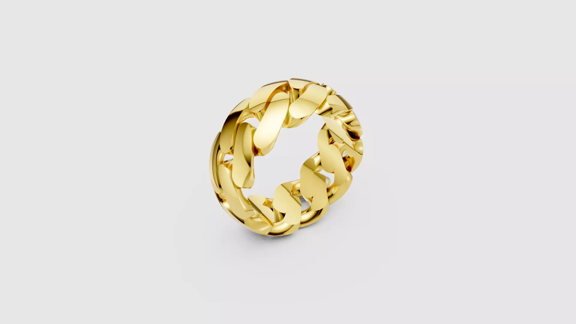 The overall design is a chunky, braided or Cuban-link style ring, typically used in fashion or statement jewelry.