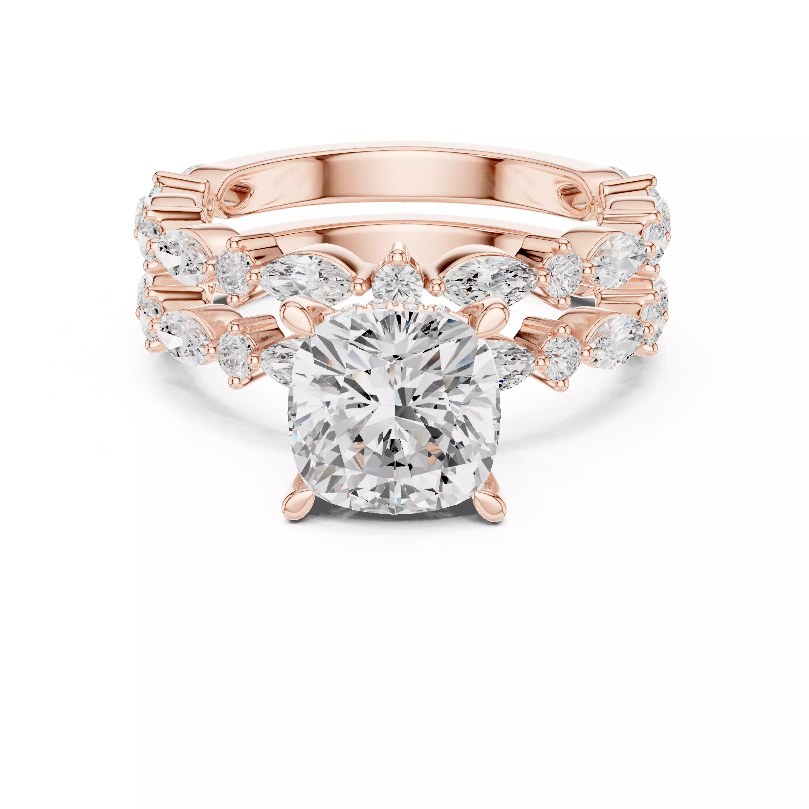 Cushion Cut Ring with Marquise Round Stacking Band Ring Set 3D print model