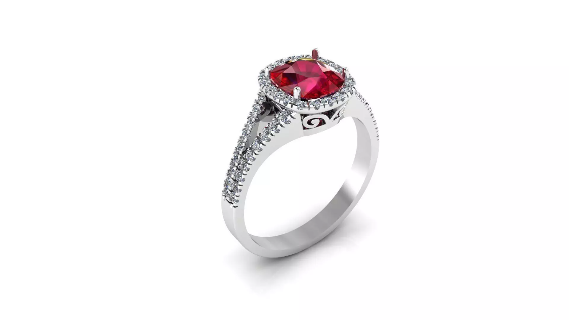 Cushion Cut Ruby Ring With Diamonds 3D print model