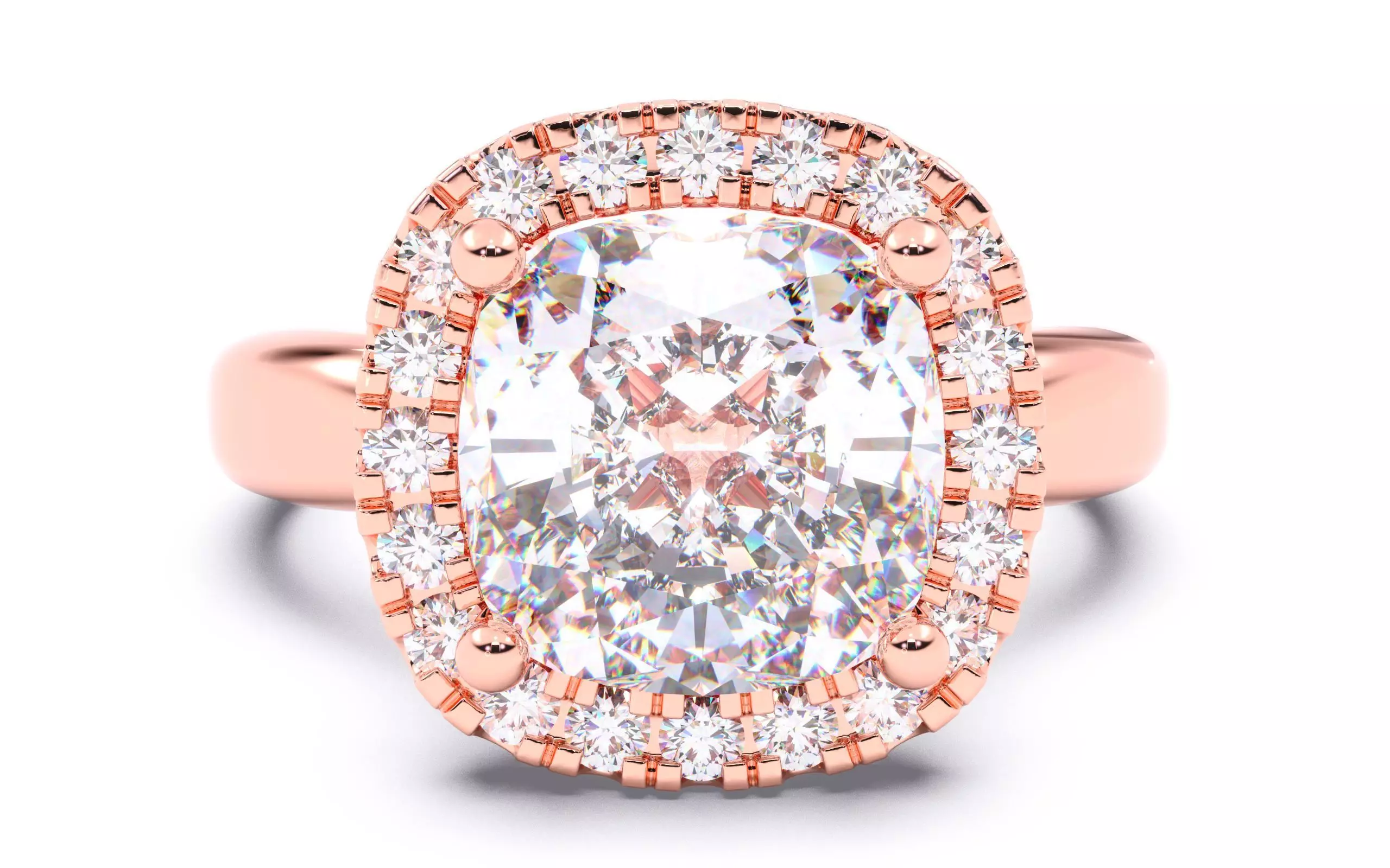 Cushion Diamond Halo Setting Solitaire Ring 3D print model