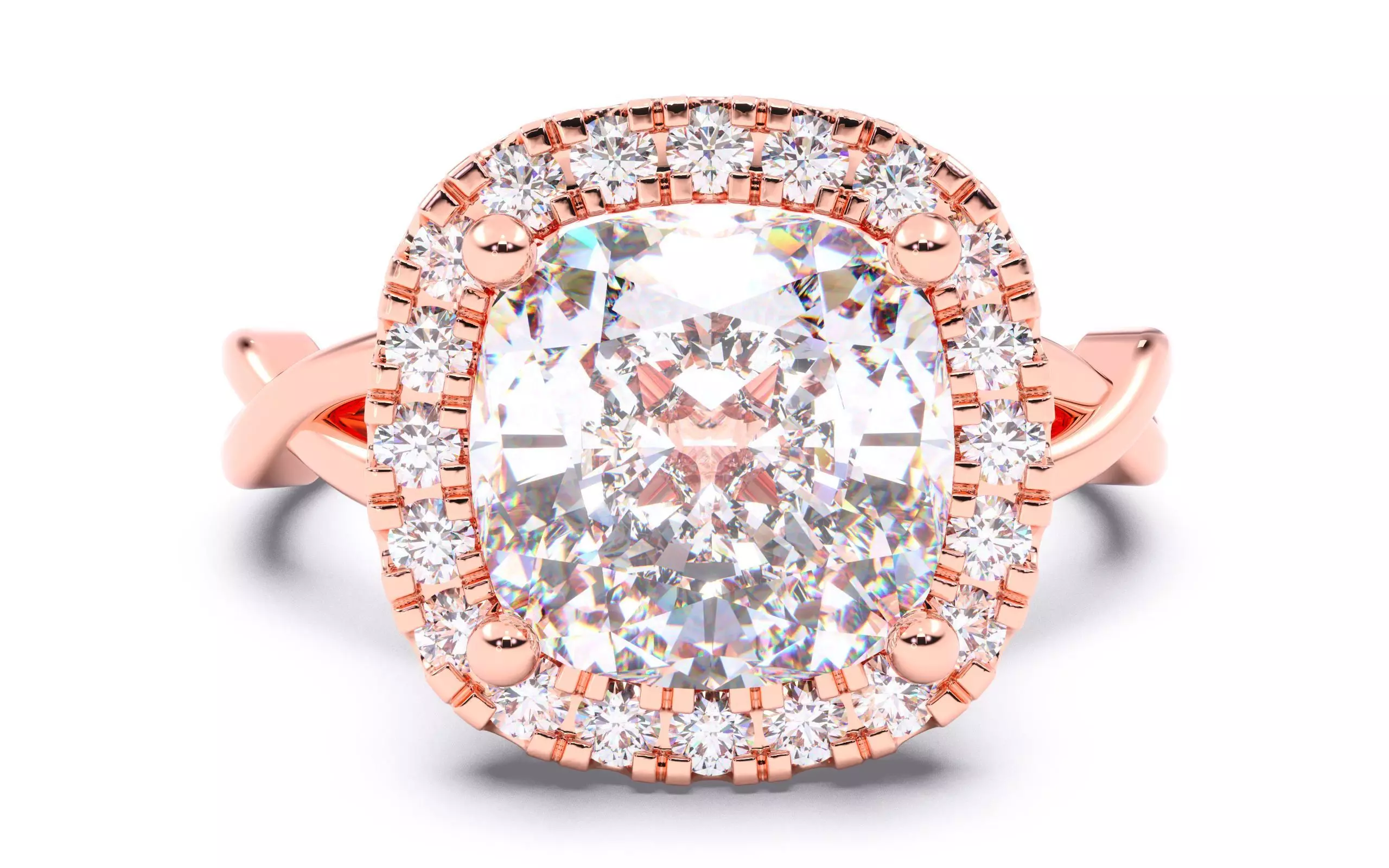 Cushion Diamond Halo Setting Solitaire Ring 3D print model