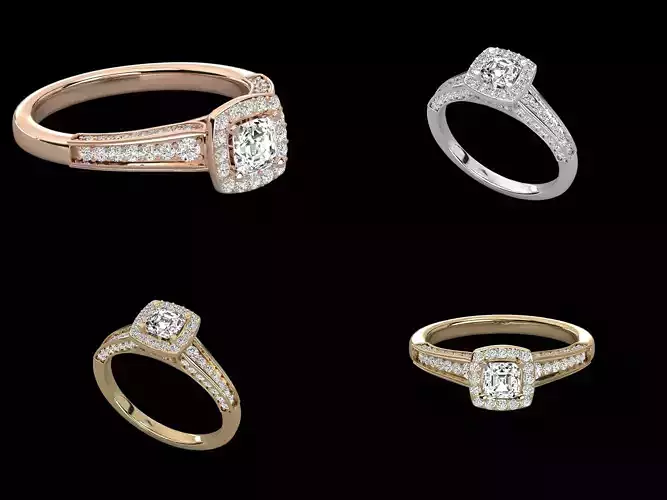 Ring Style: Cushion Halo Engagement RingDesign Type: Luxury Micro Pave SettingBand Style: Split Shank with Diamond AccentsSetting Type: Halo and PaveModel Quality: Production Ready CADDesign Focus: Balance, symmetry, and high-end finish