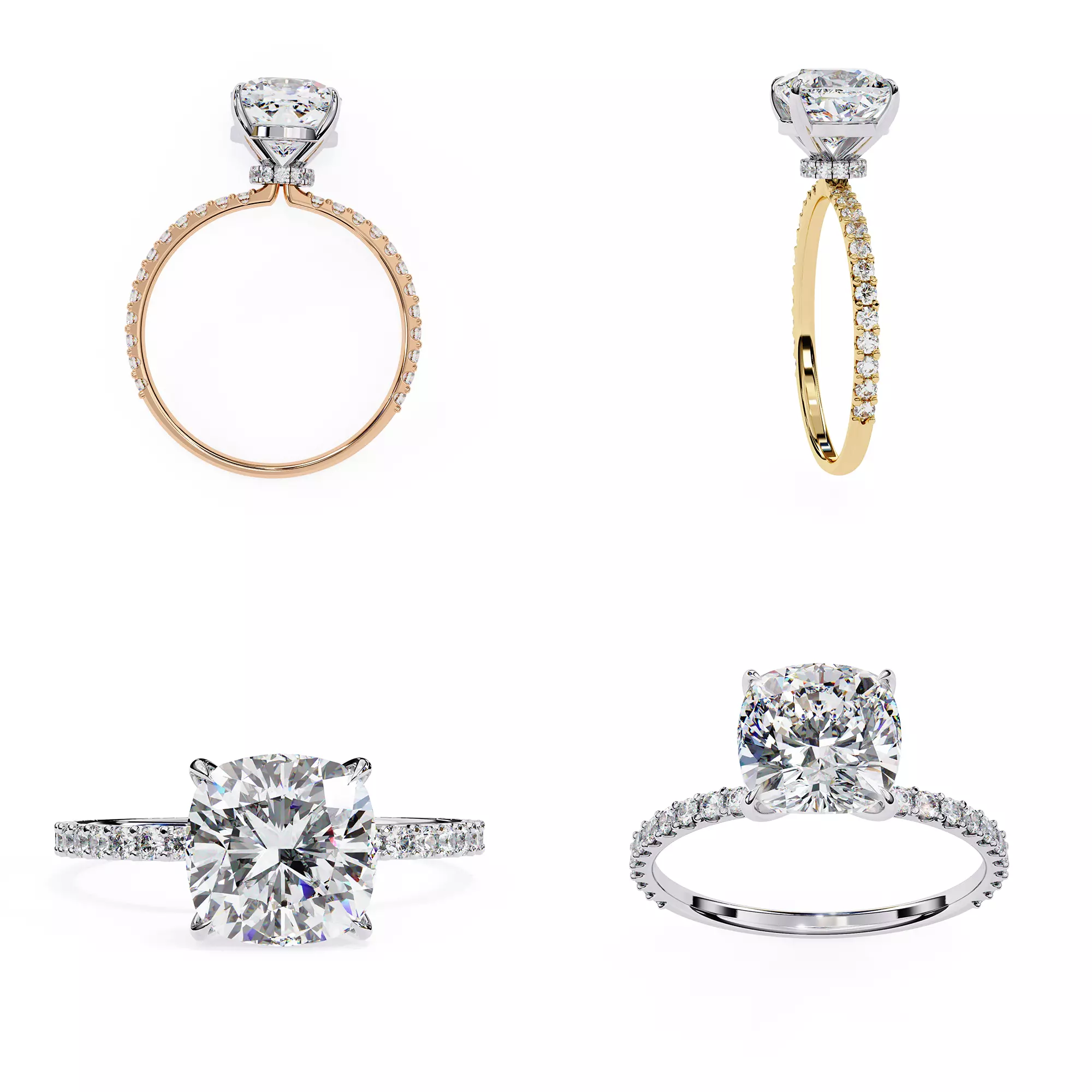 Premium cushion-cut solitaire ring with pavé diamond shank