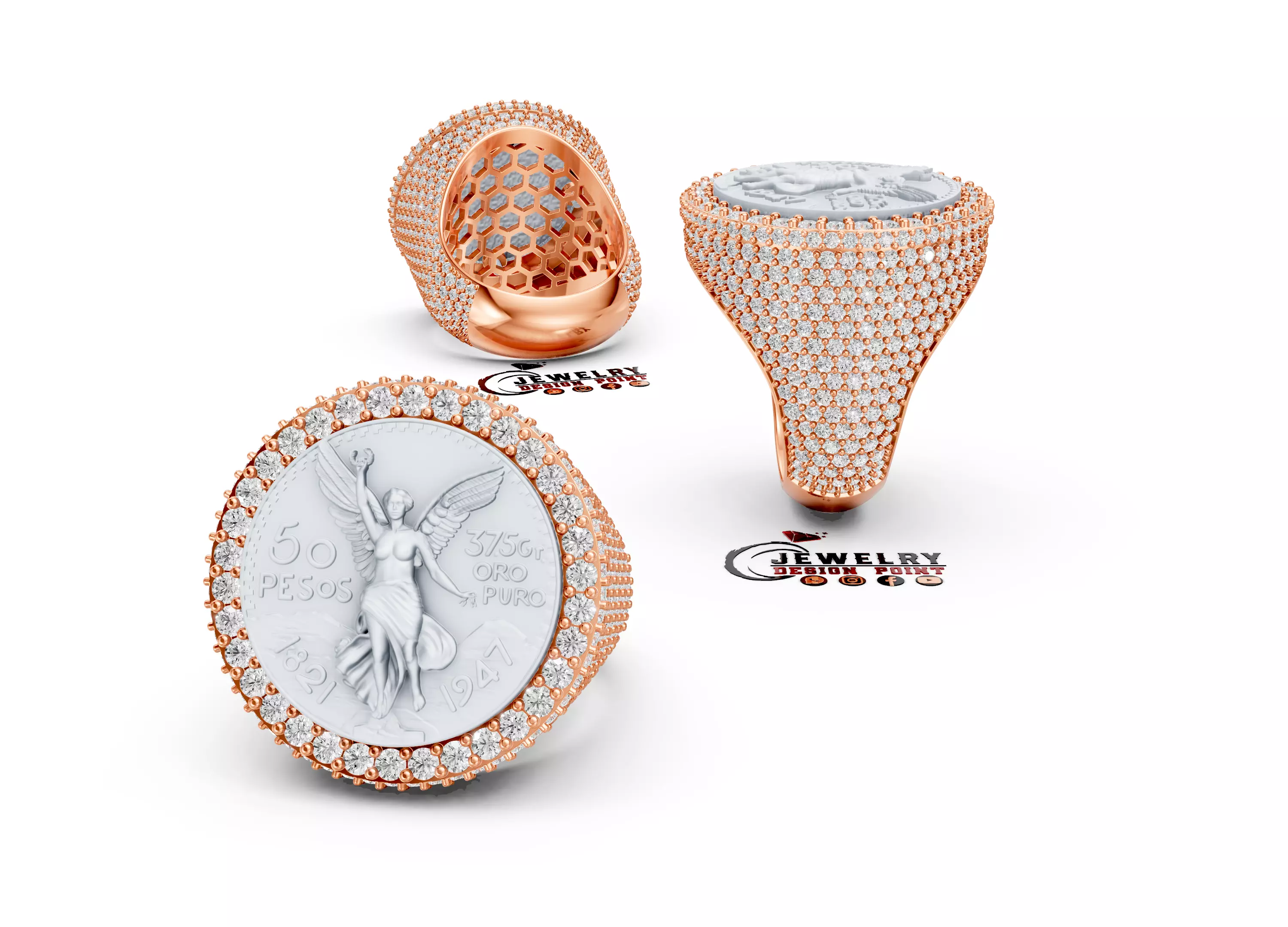 Custom Estados Unidos Mexican Gold Coin Ring Jewelry 3D print model